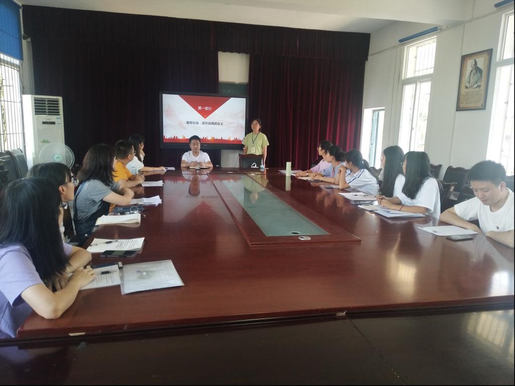 谨记党的宗旨“全心全意为人民服务”,数理学院于2020年8月20日下午16:00在博雅楼会议室开展了以服务社会,提升自我为主题的党课。