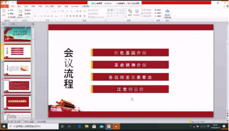 车睿同志介绍了主题内容中“红色基因”的具体含义,详细介绍了奋斗精神、五四精神、井冈山精神、长征精神、延安精神。支部同志围绕主题内容展开热烈讨论。车睿同志说道传承红色基因和弘扬革命精神是要我们用实际行动来潜移默化的影响身边的人,作为一名党员,要从自身做起,才能号召身边的人行动起来;姚瑶同志结合疫情和抗洪救灾实际,表示我们要将红色基因和革命精神内化于心,外化于行;吴茜同志联系疫情发表感想,红色基因是中国共产党战胜各种困难的精神动力,我们要不忘初心、牢记使命。支部书记江纳老师总结了本次主题党日活动,要求支部同志要从自身做起,从细微处做起,以实际行动将红色基因传承下去,弘扬宝贵的革命精神。
