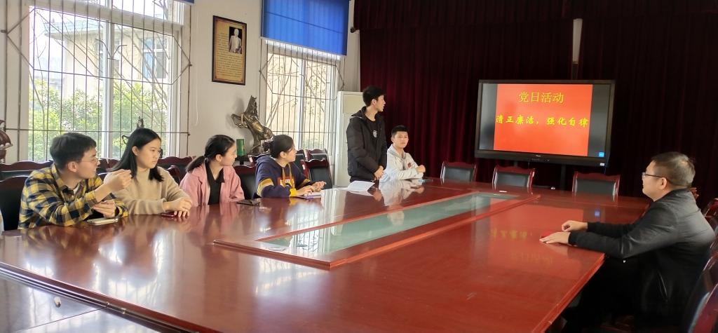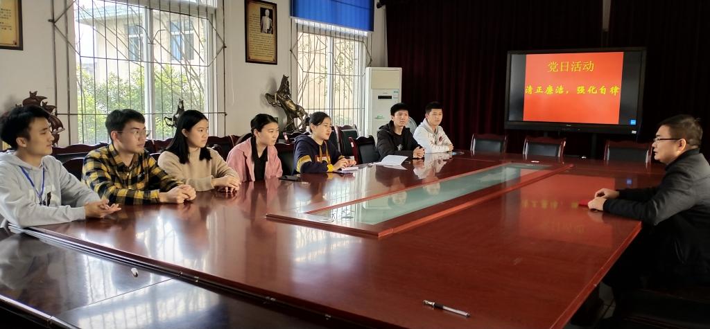 2020年11月16日12时40分,数理学院第四党支部准时在院办会议室举行主题为“清正廉洁,强化自律”的党日活动