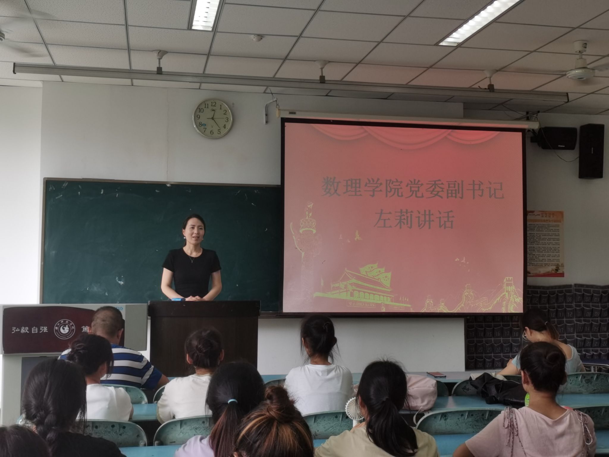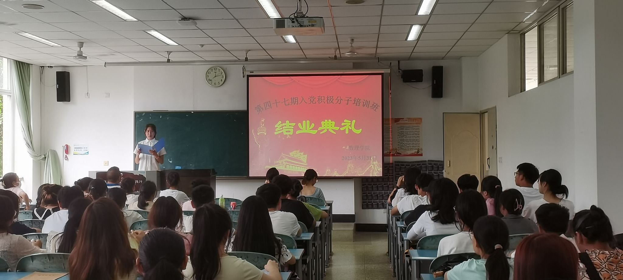 本网讯(文、图/刘树晴、张淑亭)6月3日下午,数理学院第47期入党积极分子培训班结课典礼在行知楼311举行。出席本次典礼的有学院党委副书记左莉,学生科科长陈盈舟,辅导员曹琳、廖宇、郑新美及第47期全体入党积极分子,会议由景乐怡同学主持。