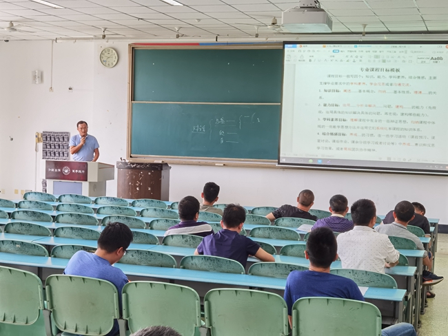 屈小兵院长以《高等代数1》课程大纲为例,重点聚焦课程目标,就师范专业认证过程中核心课程教学大纲的撰写给数学与应用数学、物理学专业专任教师作了培训。