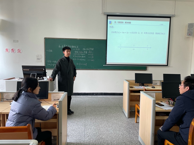 受疫情影响,四川省师范技能大赛生以及全国师范院校师范生技能大赛延期举行。比赛延期带来了种种不确定因素,就此,数理学院领导高度重视,教学法团队杨建辉、罗天琦、张彦春针对后续比赛形式及特点进行研讨并深入指导。在指导老师的帮助下,两位同学积极备战:数理学院王炳霖(省级参赛选手)对所讲课题反复研磨,多角度剖析教学片段,精益求精(图1);杜佳艳(入围全国决赛选手)则充分利用电子资源内化高中新版教材,对随机课题进行设计练习,并全面强化课件制作能力(图2)。学科教学法团队还利用教育实习基地资源,请乐山一中段华、岑雪莲、宜宾三中赵立静、邱诚等一线教师通过线上线下多种方式对参赛选手进行指导训练(图3)。两位同学利用教育实习机会进行了多次课堂实践(图4),在自主练习时则相互扮演评委的角色,取长补短,通过多种训练方式不断总结反思,全面备赛。