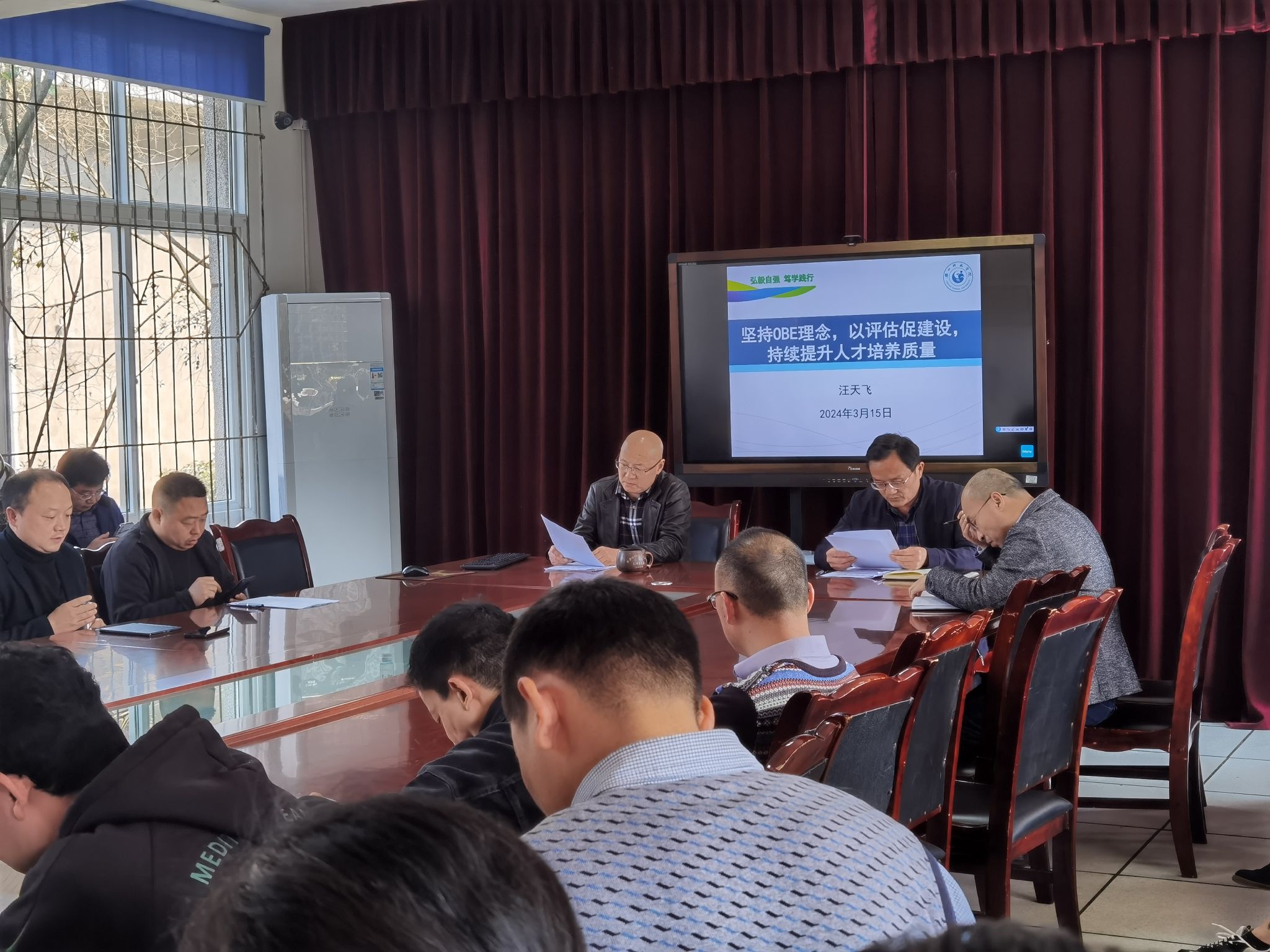 屈小兵通报了教育教学审核评估的时间表,强调了专家线上线下考察的方式和要点,对专任教师、教务和学工各科室的迎评工作职责进行了分工。随后,他对《坚持OBE理念,以评估促建设,持续提升人才培养质量》相关内容进行了培训和解读,系统阐述了OBE理念的内涵、核心、基于OBE理念的专业认证逻辑以及新一轮教育教学审核评估的工作重点等内容。他要求全体职工不仅要做好自己的本职工作,还要关心学校和学院的中心任务,团结一心,以主人翁的精神全力参与到本次迎评以及学校和学院发展的各项工作中来。