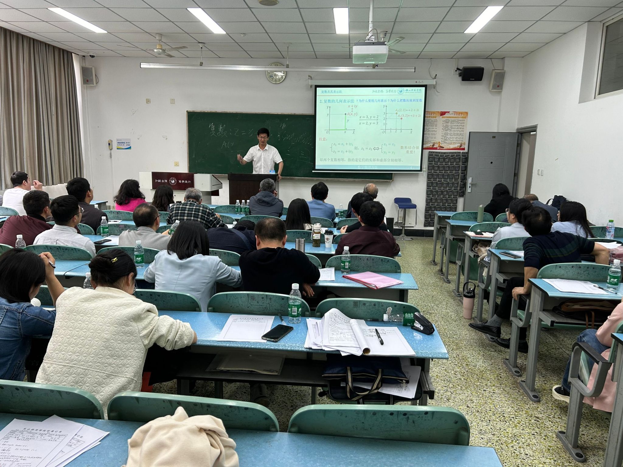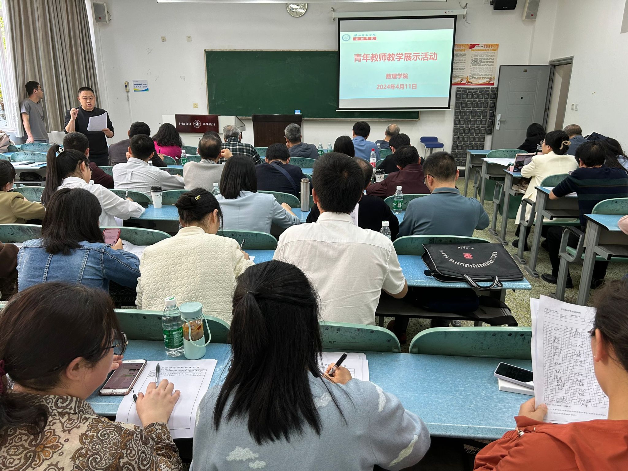 本网讯(文、图/樊华娜)4月11日下午2:30,数理学院在行知楼106教室举办了2024年春季青年教师教学展示活动,本次活动由副院长孙海主持,学院全体教职工参加了此次活动。活动共有7名刚进校的青年教师参与教学展示,每位参赛选手的展示时间为10分钟,学院特邀校级教学督导邹进教授,以及屈小兵、于恩锋、高仕龙、肖志刚、杨建会、江林巧共7人担任评委。