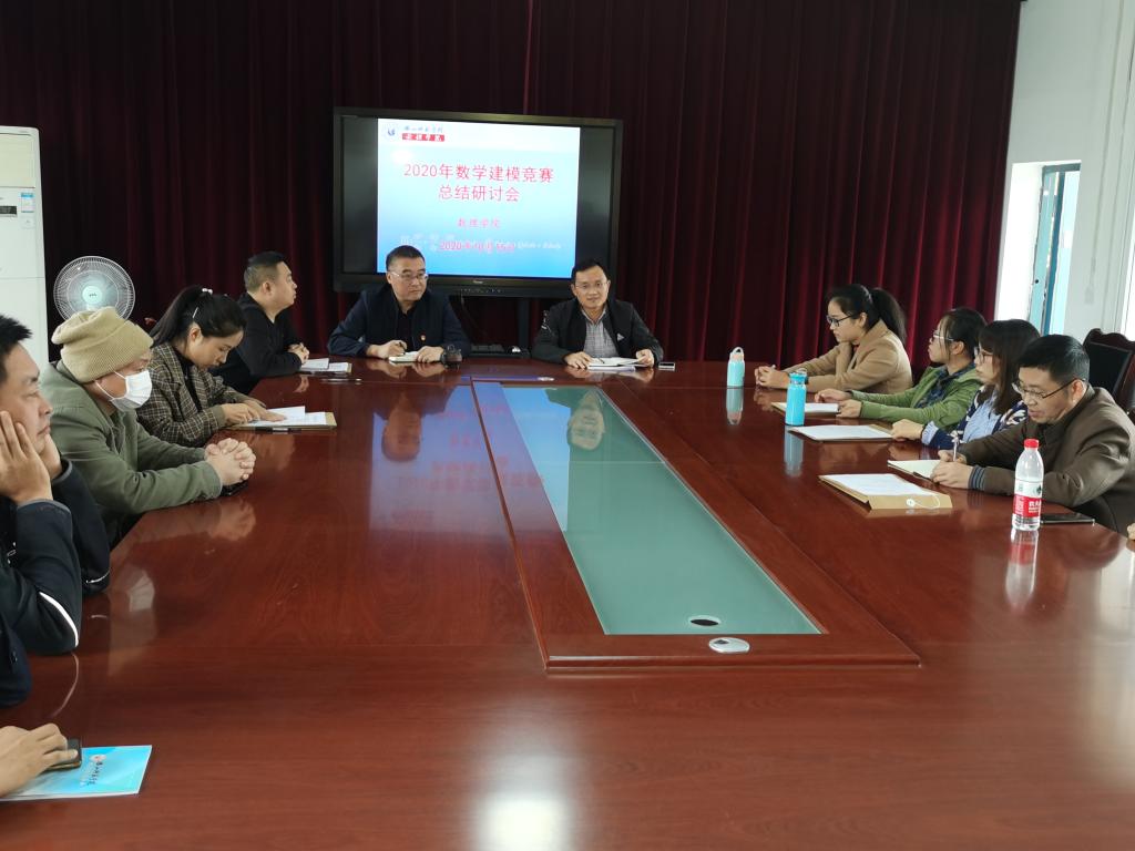本网讯(文、图/孙峰) 10月15日下午,数理学院召开了2020年数学建模竞赛总结研讨会。会议由学院党总支书记余德刚、主持工作副院长屈小兵主持,全体数学建模指导教师参加了此次研讨会。