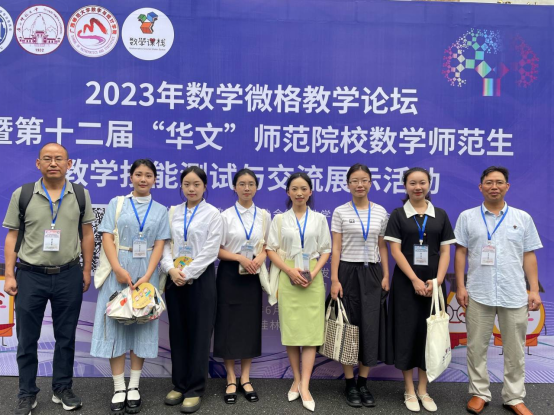 本网讯(文/罗天琦、图/杨建辉)6月23日-26日,由中国教育技术协会微格教学专业委员会主办、广西师范大学承办的第十二届“华文”全国师范院校数学教育专业师范生教学技能测试在广西桂林举行。本次大赛共有来自华中师范大学、南京师范大学、湖南师范大学等全国96个院系单位2286名师生线上线下参与,其中参与线上微课测试活动的师生1830人,参与线下教学技能测试活动的师生456人。我院邓欣睿等同学在数学微课设计能力和数学微格教学技能两项测试中均取得优异成绩,全部获奖。本次比赛成绩在参赛院校中名列前茅,共计一等4项,二等4项,三等2项。其中微课设计一等2项、二等2项,微格教学一等2项,二等2项,三等2项。数理学院再次荣获“优秀组织单位”称号。