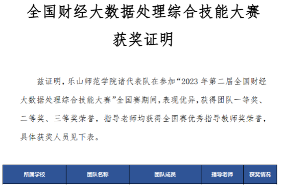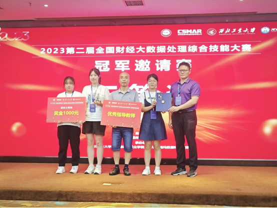 本网讯(文、图/于恩锋)由中国商业会计学会主办,西北工业大学、深圳希施玛数据科技有限公司承办的2023年第二届全国财经大数据处理综合技能大赛近期落下帷幕。该项赛事从5月15日开始报名到7月中旬结束冠军邀请赛,历时两个月,吸引了全国27个省、市、自治区的190家本科院校、2248名学生参加。数理学院金融数学专业学生参加了该赛事的“数据分析组(本科赛道)”比赛,赛事的“全国赛”阶段分为“知识竞答”、“数据采集与清洗”、“数据分析”3 个环节,以3人团队形式完成。“知识竞赛”考察参赛选手对财经知识、财经数据处理和分析知识的掌握程度;“数据采集与清洗”要求参赛选手按照题目要求编写 Python 代码实现自动化财经数据采集和数据清洗工作;“数据分析”要求参赛选手编写 Python 代码进行财经数据挖掘和建模,完成对真实问题的分析解答。