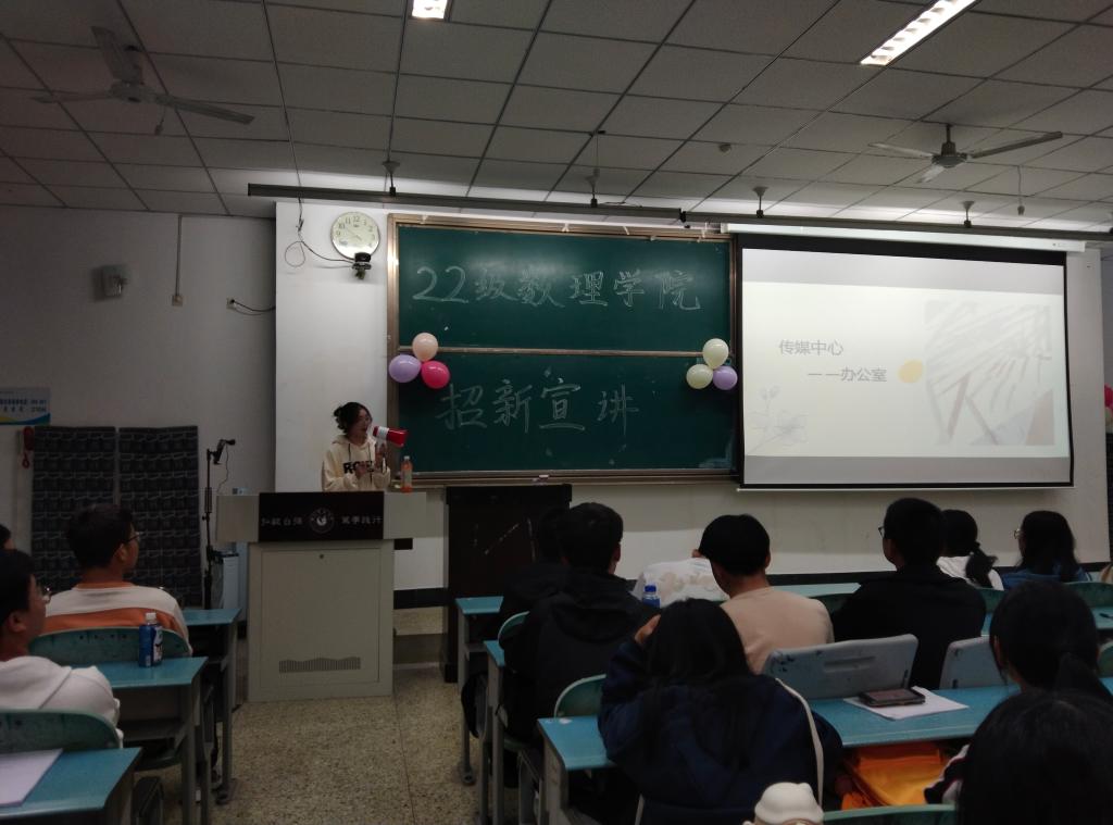 本网讯(文、马梓菡/图、代凡)11月12日,为进一步丰富学生校园文化生活,持续推进团学组织队伍健康发展,数理学院在行知楼214和225教室开展了学生分会、分团委、传媒中心三支团学组织招新见面活动。本次活动由三个组织学生干部负责人牵头开展,学院分团委书记郑新美老师以及22级新生参加本次活动。
