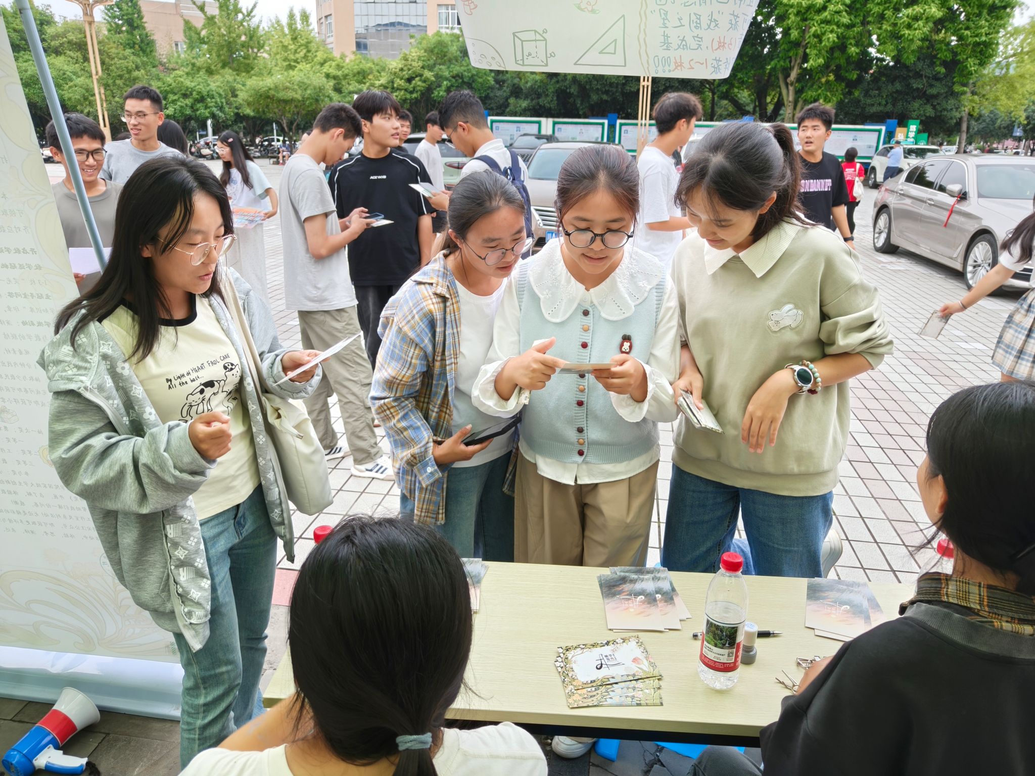 活动现场设置打卡互动、主题寻宝、话剧演绎、情感探索四大模块,吸引了三百余名师生参与。在主题寻宝环节,同学们通过研读数学史料、破解学科谜题,系统梳理数学家生平事迹与数学发展脉络,在探索中感受数学文化的历史厚度;话剧演绎环节中,学生团队化身"数学使者",以《勾股定理的诞生》《微积分的碰撞》等原创剧本为载体,通过生动的肢体语言与情感表达,将抽象的数学定理转化为具象的舞台叙事,让观众沉浸式体验数学思想的演进历程;情感探索环节则通过"数学盲盒""概率游戏"等互动设计,引导参与者记录探索心得,在"做中学、思中悟"的过程中深化对数学教育价值的理解。