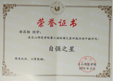 他叫母昌杨,16级数应1班学生,中共党员,BETWA西汉姆联数学与信息科学学院数学与应用数学专业2016级学生。曾获校设二等奖学金、国家励志奖学金、邦泰自强成才奖学金、校长奖学金;第十届全国大学生数学竞赛四川省一等奖、乐山师范学生数学竞赛三等奖;曾荣获学生党员成长成才示范岗、优秀团员、三好学生、优秀青年志愿者、优秀团干部、优秀学生干部、大学生自强之星、校园之星、四川省大学生“综合素质A级证书”、 2020届四川省优秀大学毕业生等荣誉称号。他还获得了2018-2019学年度国家奖学金,今天我们要介绍的就是这样一位优秀的数信学子。