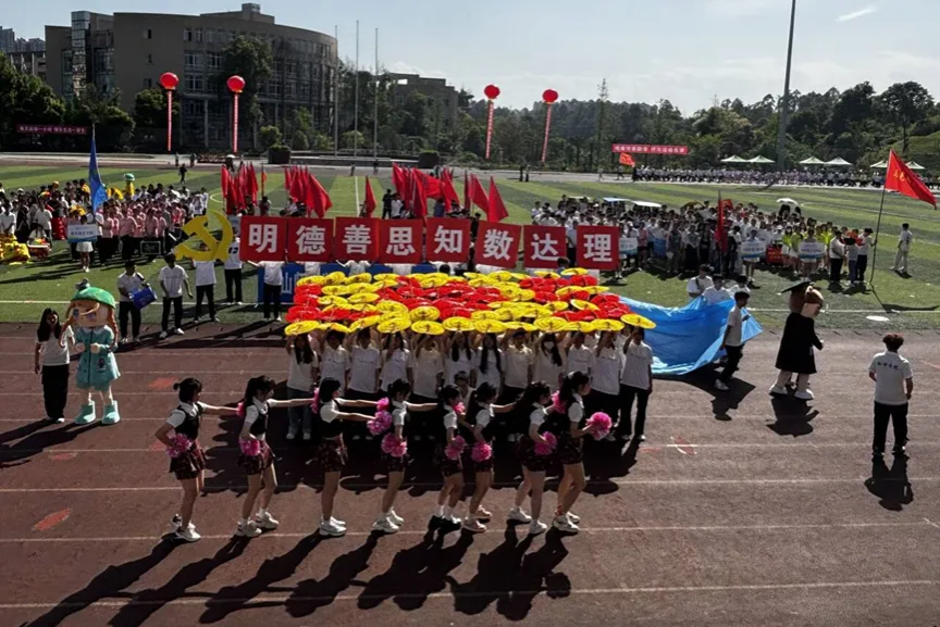 “明德善思,知数达理,赛场争辉,勇创佳绩!”学子们嘹亮的口号与整齐的队列变换相得益彰,赢得评委组高度评价。现场观众纷纷举起手机记录这充满巧思的视觉盛宴。