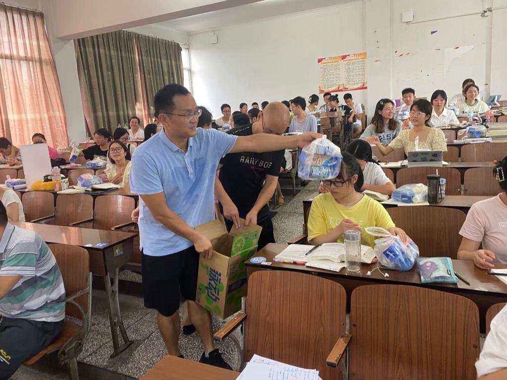 慰问活动中,同学们也分享了自己的学习进度和学习方法,讲述了备考过程中遇到的问题与困惑。学院领导老师结合专业实际、自身经历和学校规定作了解答。为表达对同学们的美好祝福和细心关怀,学院还给每位同学精心准备了“清凉礼包”,祝愿考研学子能在乐师度过一个难忘而有收获的暑假!