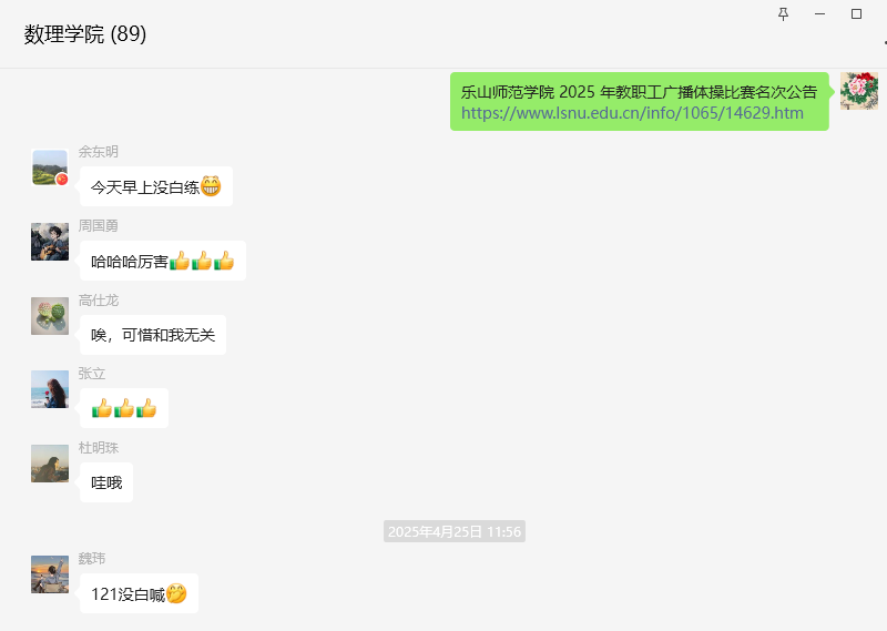 比赛成果更带来积极辐射效应。据统计,学院教师中85%已养成每日运动习惯。获奖当晚,学院群内祝贺信息刷屏,多位教师感慨:"动作标准只是表象,真正收获的是同事间默契与集体归属感。"学院党委书记马力强表示,要以此次荣誉为契机,持续开展教职工健康促进活动,让运动文化成为凝聚人心的新纽带。