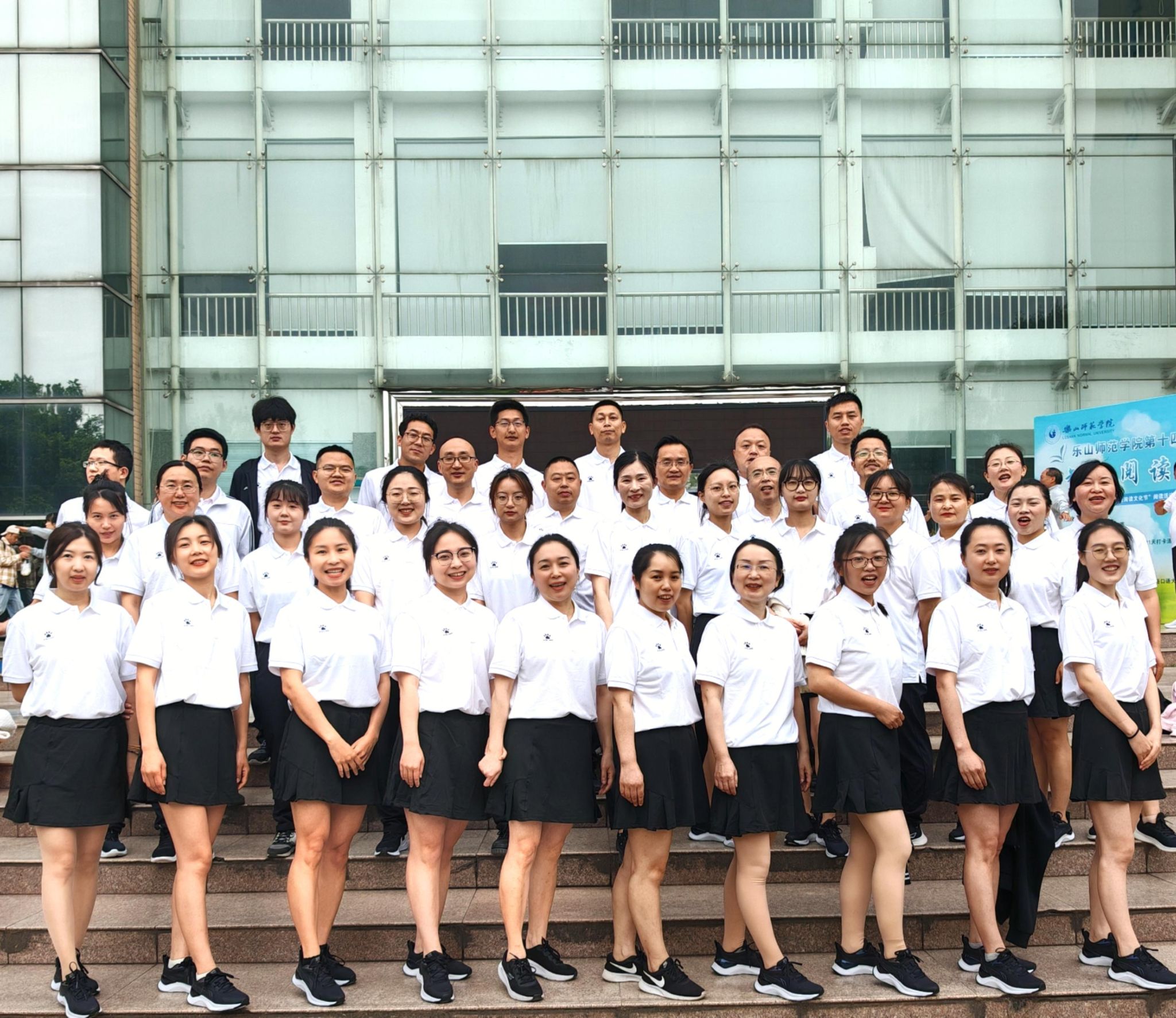 此次参赛的教职工均为自愿报名,涵盖学院多个专业的教师及行政人员,其中40-50岁运动员14人,高职称高学历运动员占比73%。为备战比赛,学院邀请体育学院体操专业学生担任指导,制定"每日自主练习+周四集中特训"计划。训练过程中,院领导率先垂范训练全勤,多位老师克服身体挑战,有的老师肢体运动不协调,有的老师腰部有旧伤,仍坚持训练;辅导员周永健老师作为领操员,和余东明老师还主动承担起带学和口令员的工作,带领团队规范动作、帮助同事攻克肢体协调难关。全体队员以"零请假、全勤练"的态度,力争将第九套广播体操每个动作打磨到位。