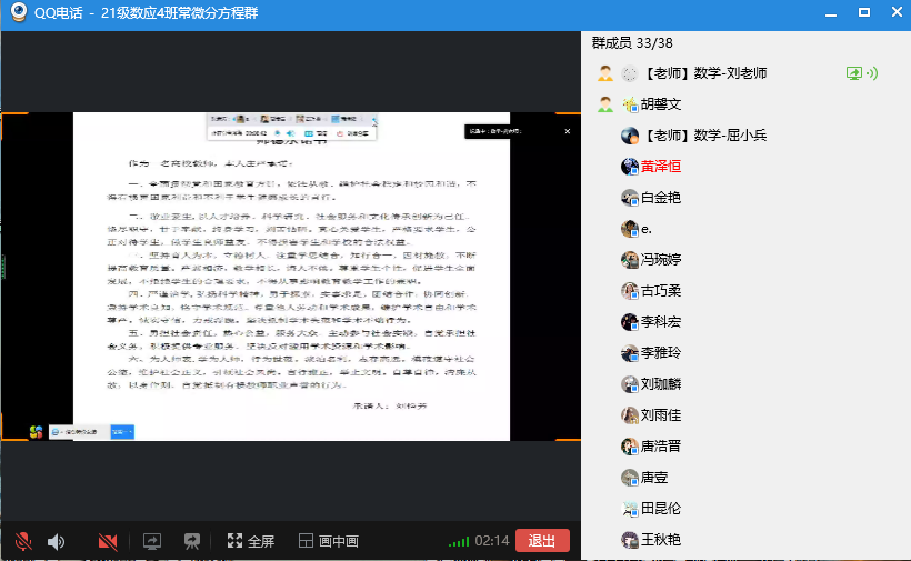 新学期伊始,数理学院的全体教师和学生精神饱满,线上教学工作有序进行。在线教学过程中,任课教师通过各种方式增强师生互动,保证线上教学质量。