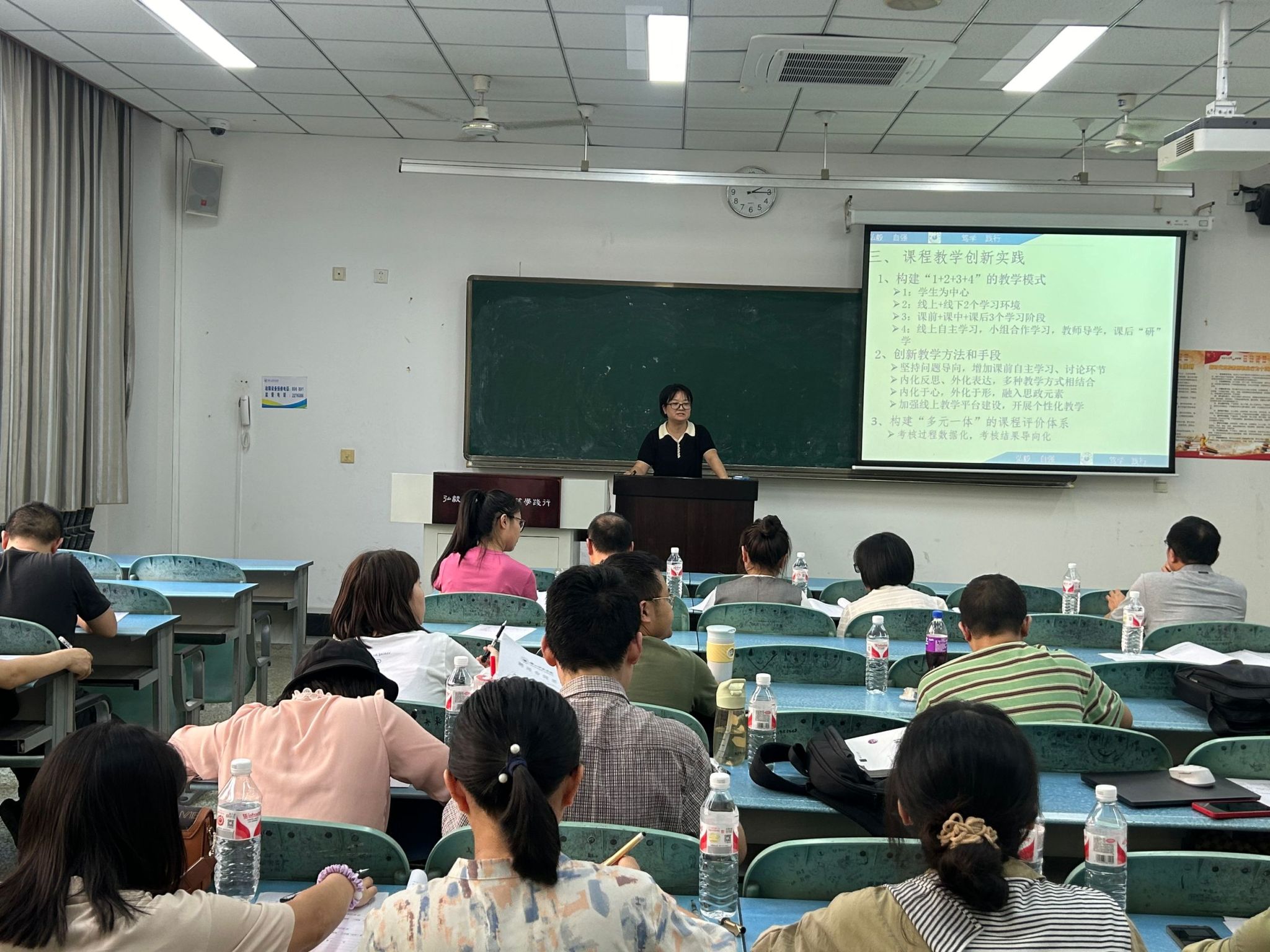 本网讯(文、图/樊华娜)926日下午2:00,数理学院在行知楼102教室举办了2024年教学质量奖院内选拔赛。学院全体教职工参加了此次活动,赛事由副院长孙海主持。活动共有9名教师参与教学展示,其中青教赛选手5位,创新赛选手4位。每位参赛选手的展示时间共20分钟,评委由屈小兵、黄宽娜、孙峰、张立、周俊屹担任