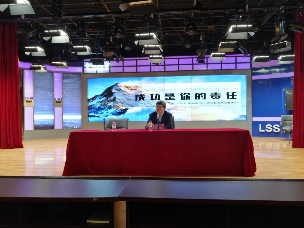本网讯(文、图/马梓菡)4月22日,“桃李芬芳—感受榜样力量”数理学院校友讲坛之“成功是你的责任”主题讲座在旷怡楼一教八阶举行。本次讲座由数理学院党委书记马力强主持,乐山惠灵教育集团董事长范惠灵(数理学院1982级校友)主讲,数理学院辅导员以及100余名学生参加了本次讲座。