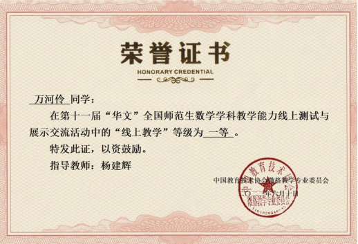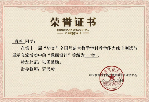 本网讯(文、图/罗天琦)近日,数理学院肖莉等20名同学分别以组队赛、个人赛方式参加了第十一届“华文”数学微课设计及线上教学能力测试与交流展示两项比赛,并喜获佳绩。