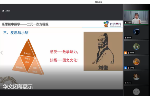 活动由中国教育技术协会微格教学专业委员会主办,广西师范大学承办,汇集了来自西南大学、云南师范大学、重庆师范大学、哈尔滨师范大学等高校1270名选手,其中微课设计能力测试参与院系73个,微课作品共373件,线上教学技能测试参与院系66个,参加学生255人。经过两天紧张激烈的角逐,我院选手在数学微课设计和线上教学技能展示两项活动中均取得优异成绩,全部获奖。成绩在参赛院校中名列前茅,共计一等5项,二等4项,三等1项。其中微课设计一等3项、二等2项,线上教学一等2项,二等2项,三等1项。数理学院再次荣获优秀组织单位称号。在闭幕式上,我校万河伶同学还以数学文化课题“二元一次方程组”应邀参加在线优秀作品现场展示分享,充分展现了我校师范生的课程思政的意识和优秀的师范技能。