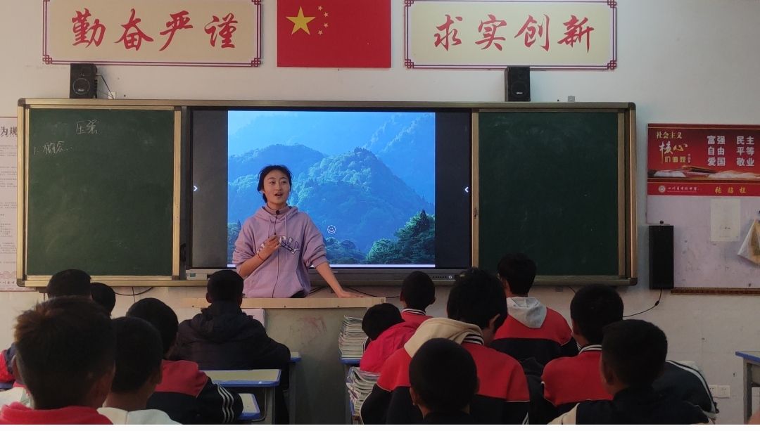 支教生活的初体验是辛苦而又甜蜜的,看着原来调皮的学生现在主动来问问题,原来散漫的学生愿意在课堂上踊跃举手发言,那份发自心底的欣慰与满足是无与伦比的。未来的日子里,我也将会继续磨炼本领,砥砺前行,不负教师之名。