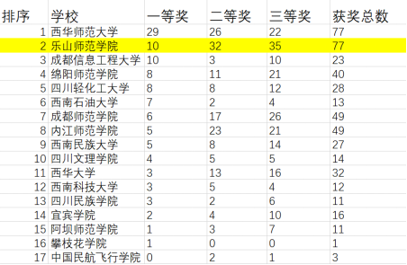 本网讯(文/屈小兵)第十五届全国大学生数学竞赛(四川赛区)比赛结果于近日揭晓,我校获奖总数再创新高,其中数学专业类获得一等奖10项、二等奖32项、三等奖35项;非数学专业类获得二等奖3项,三等奖8项。我校学生在获奖总数、获奖质量、获奖率等方面都在同类院校中名列前茅。