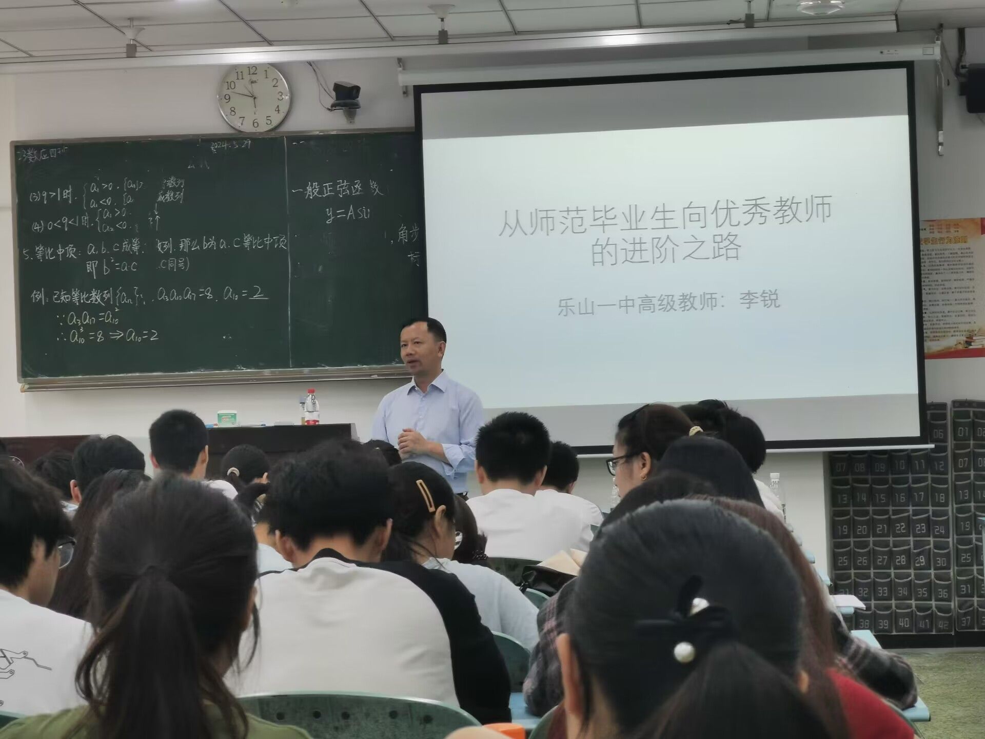 乐山嘉祥的两位新锐骨干教师张一楠和蒋若琳分别做了《如何成为一名快乐幸福的人民教师》和《行稳致远进而有为》的讲座,乐山一中的高级教师、教研组长、四川省教书育人名师李锐为物理学专业学生做了《从师范毕业生向优秀教师的进阶之路》的讲座,分享学科专业成长发展规划建议。