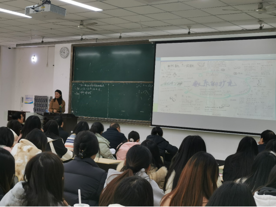 成都树德中学高中数学教师刘臆为2022级数应专业学生对课题“数系的扩充和复数的概念”分别进行了标准课和说课的示范公开课,树德中学高中数学教研组长李小蛟首先对刘臆的教学进行了深入全面点评,然后做了主题“整合教学,整全育人”的讲座。数理学院教学法教师罗天琦、张彦春等参加了讲座。