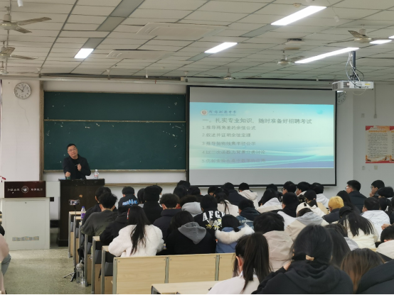 成都树德中学高中数学高级教师陈学良以“扎实专业,争取机会,逐鹿梦想,乐享一生”为主题,结合自身学习和工作经历,分别从高中教师招聘、年轻教师机遇与梦想追求、职业选择和职业态度等方面为学生进行了有趣且实用的分享。陈老师在讲座中强调大学生要学好专业知识,这是作为教师的底气,要积极抓住各种示范课、公开课的机会展示自己,要热爱自己的教师职业,并为职业生涯进阶坚持奋斗。