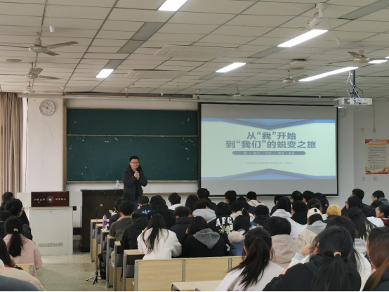 四川百分优课教育科技有限公司CEO彭春波以“从我开始,到我们的蜕变之旅”为主题,与同学们分享了自己在BETWA西汉姆联的学习经历,在教师职业选择和创业过程中的心路历程。彭春波强调大学生必须做好自我认识、职业探索和角色定位,通过持续学习不断进行能力提升,保持良好乐观心态,以更好地掌握自己的人生。