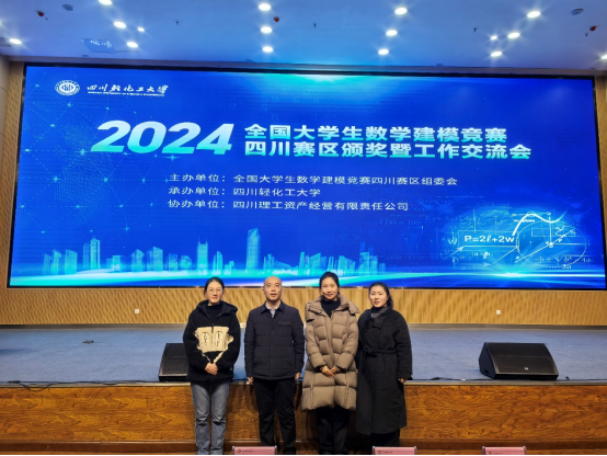 本网讯(文、图/于恩锋)2025年1月12日,全国大学生数学建模竞赛四川赛区颁奖暨工作交流会在四川宜宾举行,会议由全国大学生数学建模竞赛四川赛区组织委员会主办,四川轻化工大学承办,数理学院于恩锋副院长、数学建模团队成员张立、余孟玲、邹智敏参加本次会议。