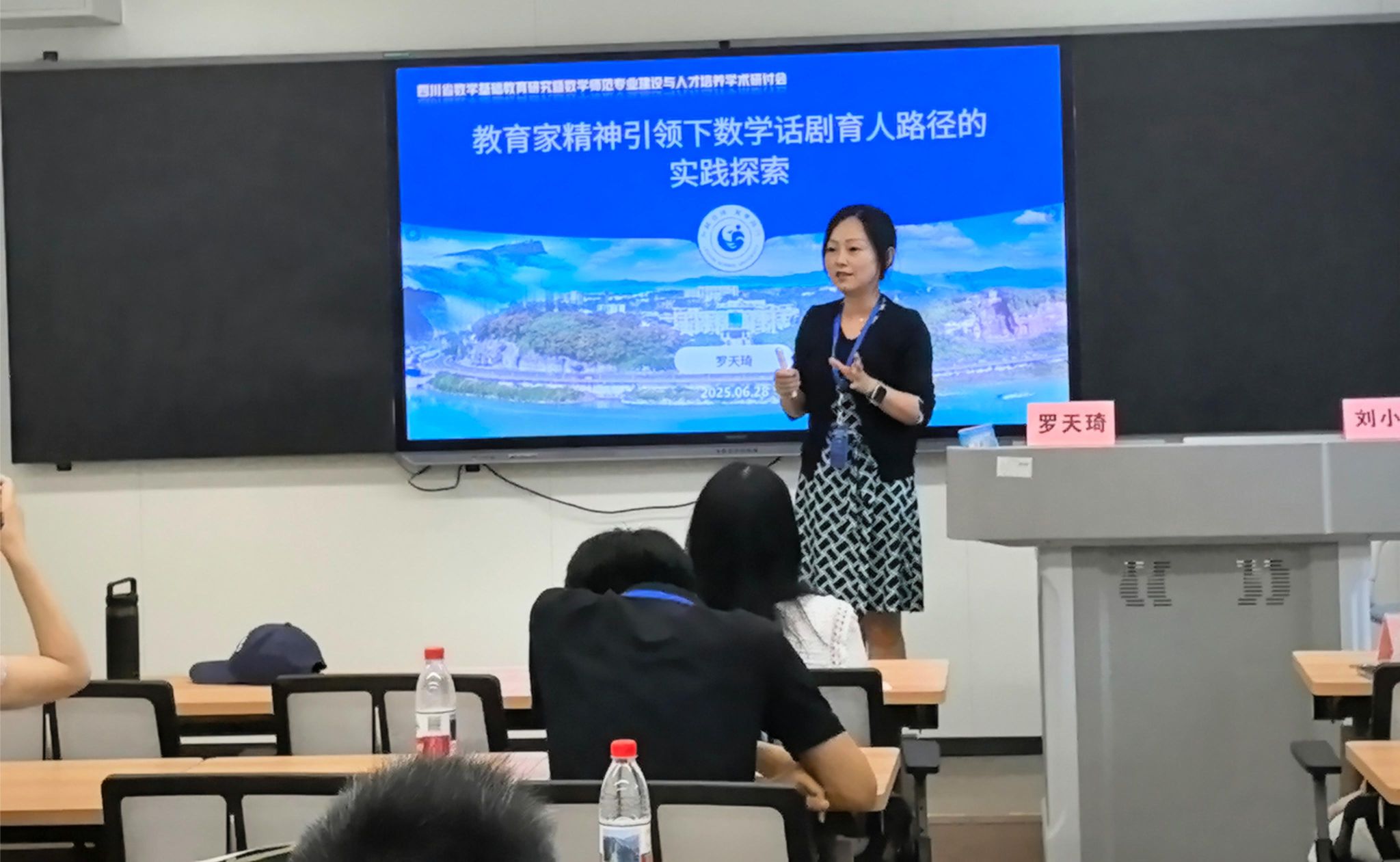 本网讯(文、图/朱玺润、罗天琦)2025年6月27日至29日,四川省基础教育研究暨数学师范专业建设与人才培养学术研讨会在四川师范大学顺利召开。会议由四川省数学会、四川师范大学主办,四川师范大学数学科学学院承办,设置了丰富多样的内容,包括大会报告、“面向基础教育的数学教育教学研究”主题分论坛、数学师范专业建设与人才培养论坛、U-S数学教师培养主题沙龙、中学现场教研课及专家点评,旨在构建数学教育协同发展机制,深化数学教师专业成长路径研究。我校数学与统计学院院长屈小兵教授、罗天琦教授、数理学科教学工作室学生成员朱玺润参加了本次会议。