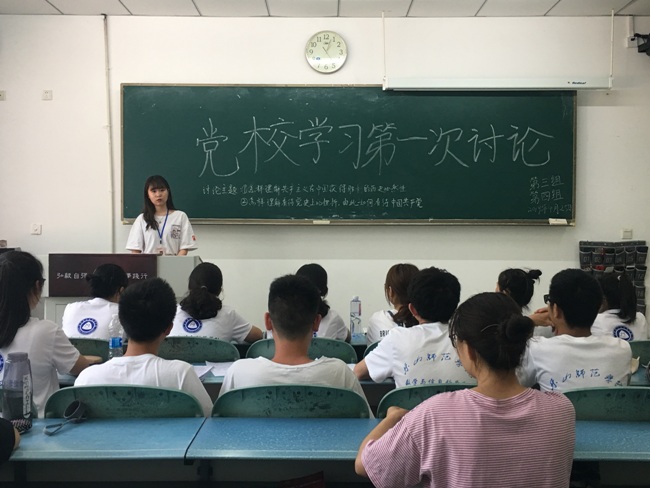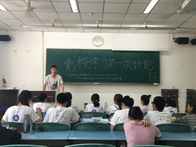 2019年4月25日中午12:10,数信学院第39期分党校第一次讨论课在行知楼116、117、118教室分组举行。此次讨论课由数信学院党建中心组织部组织,并提前邀请学院党政处科级干部、处级后备干部参与指导讨论。辅导员郭晖老师、学生党员代表6人以及第39期分党校全体学员参加了本次讨论课。
