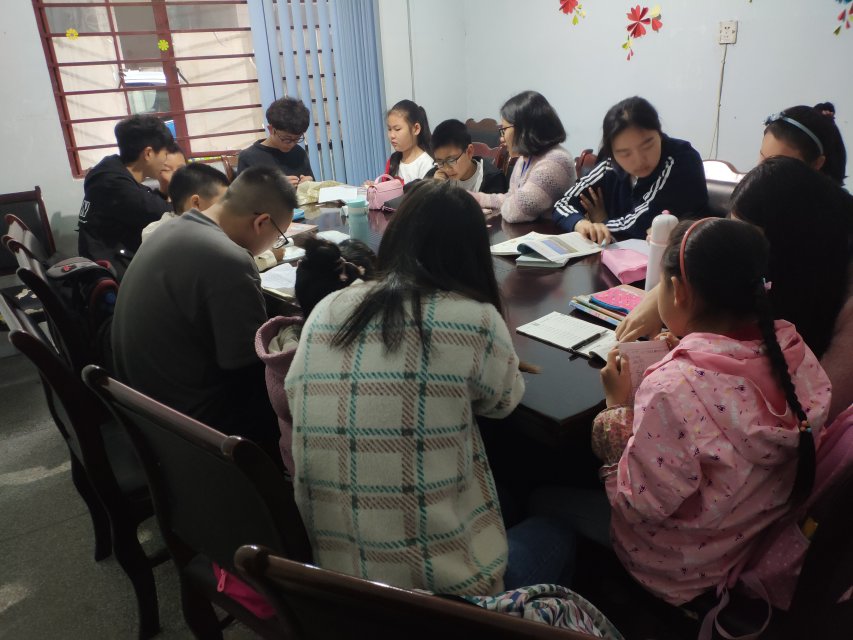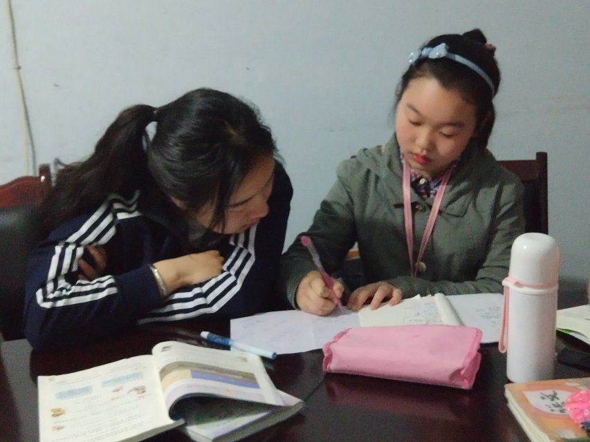 家教开始之前学生党员先和学生沟通好他们的学习情况,并且大概了解了他们的学习情况之后便开始了他们的今天的家教活动。