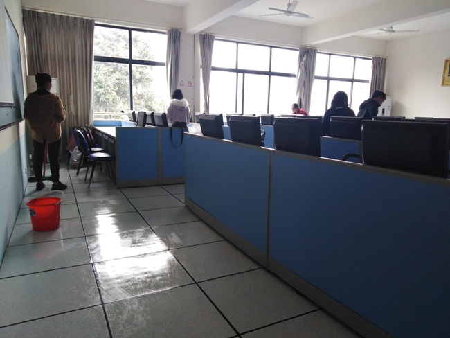在志愿服务过程中,全体学生党员积极认真,默契配合。在12:40,各支部准时到实训楼底集合、清点人数同时分配安排任务。此次活动的地点是实训楼五楼、六楼的机房教室,主要负责清扫地面卫生,擦拭桌面黑板以及的死角的灰尘。各支部合作完成了B区512、605、607、603等教室的清扫,分工完成了教室垃圾的处理,桌凳的整理,劳动工具的归还摆放。使实训楼变得更加整洁有序,不仅为美丽的校园增添了光彩,同时也为此次美丽乐山创卫活动贡献了自己的力量。美丽干净的校园需要我们共同的维护,优秀的学生党员在此做了很好的示范,我们都应该向他们学习。