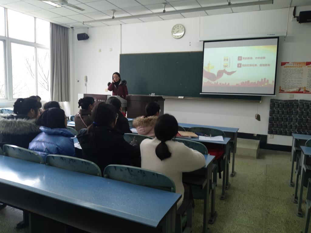 本网讯(文、图/代家林、龙雯)2019年12月24日中午12:40,数信学院第四学生党支部在行知楼119教室开展了以“党的路线、方针政策和形势任务、国情教育”为主题的党课教育活动。参与本次党课的有党建中心指导老师曹琳以及支部全体党员和预备党员。此次党课由曹琳主讲。
