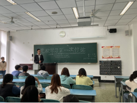 本次讨论围绕两个问题展开:1.如何理解共产主义在中国获得胜利的历史必然性.2.怎样看待党史上的转折?以及如何看待中国共产党?各小组发言人依次发表了自己的见解,小组成员做出补充。首先,大家认为共产主义反映了人类社会发展的客观规律,共产主义领导中国走向社会主义发展道路,在中国获得胜利是历史的必然性。其次,有好几个党同志都提出了没有中国共产党就没有新中国,在探索历程中遇到挫折是在所难免的,但中国共产党理想看待挫折,发现错误并及时纠正,这既是挑战也是机遇。所以中国共产党是中国各族人民的先锋队,是中国各族人民利益的忠实代表。最后,党总支书记余德刚做出总结:党史的艰苦卓绝是如今取得辉煌成就的基础,共产党是奋发向上的,我们应该用长远和全面的眼光去看待党史上的挫折,且在挫折中成长的党必定会更加强大。