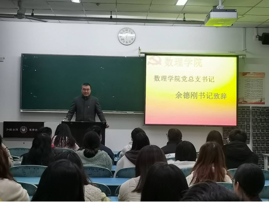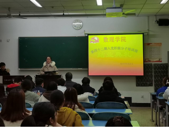 本网讯(文图/谢兵)2020年11月29日,数理学院分党校第42期入党积极分子结业典礼在行知楼109圆满举行,参加典礼的有数理学院党总支书记余德刚、辅导员曹琳、党员代表及第42期全体入党积极分子。
