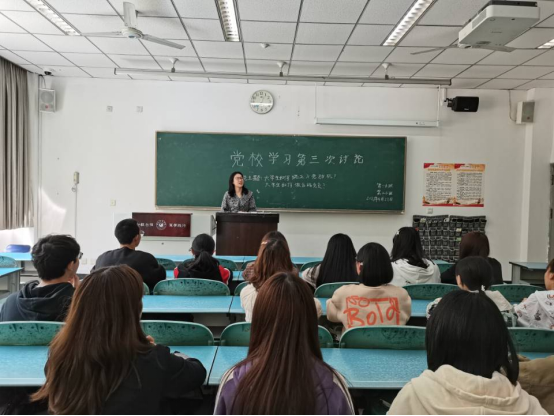 本次讨论的主题是:大学生如何端正自己的入党动机?大学生如何做合格党员?首先由党员代表发言,她提到我们要加强学习理论知识,并把其运用到实践当中去。然后做一名合格的党员需要落到实处去,从我们身边的小事做起,不断提高自我的能力。不要只是空洞,而是要去实践。在同学们的讨论中,大家结合自身情况,去谈自己对这两个问题的理解。两组同学都对发言人进行了补充,让讨论课开展的更加深入。最后两位支部书记分别结合讨论主题和大家的发言进行了总结和评价,希望新一期入党积极分子能端正入党动机,以一名优秀党员的标准严格要求自我。
