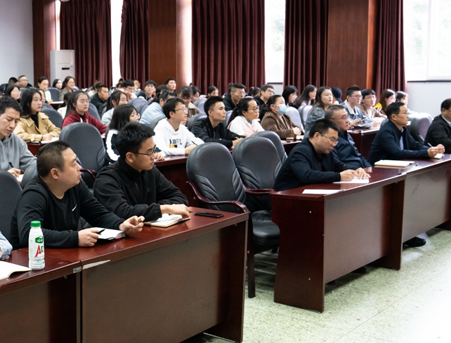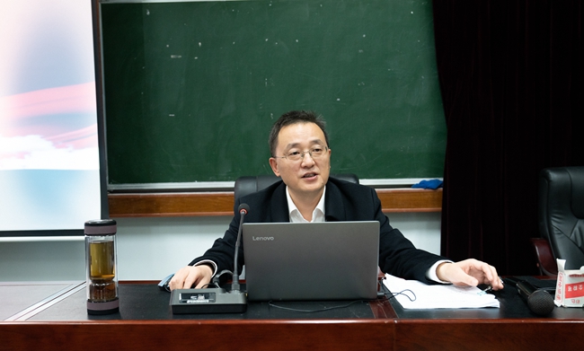 刘进校长从习近平总书记七一讲话入手,以毛泽东诗词为时间线,分析了中国共产党艰苦卓绝的奋斗历程,他深入浅出,分析了老一辈无产阶级革命家为中国革命和建设所作出的巨大贡献,鼓励新时代的干部继往开来,不断从党史中汲取营养,在教学科研和人才培养中做到“三个认识”“三个汲取”“三个结合”,即认识我是谁、为了谁,对人民忠诚是什么、怎么做,新时代教育工作者的使命是什么、该以什么样的精神状态承担这样的使命;在知史中汲取爱党爱国的力量、勇于担当的力量、强国的力量;把学习党史与学懂弄通新时代的创新理论结合起来,与传承党的革命传统优良作风结合起来,与为人民守初心为民族担使命结合起来。