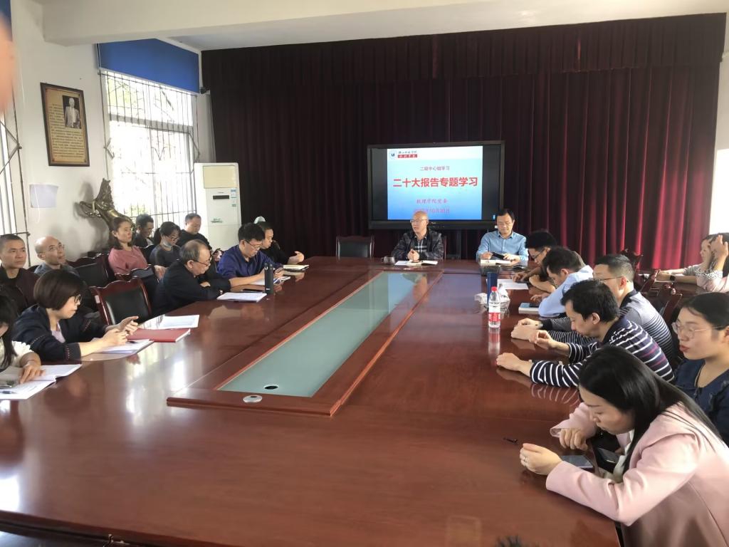 本网讯(文、图/曹琳、余瑶)10月20日,数理学院党委书记马力强在学院会议室为全体党员同志讲专题党课,解读了党的二十大报告精神。学院全体党员同志参加。