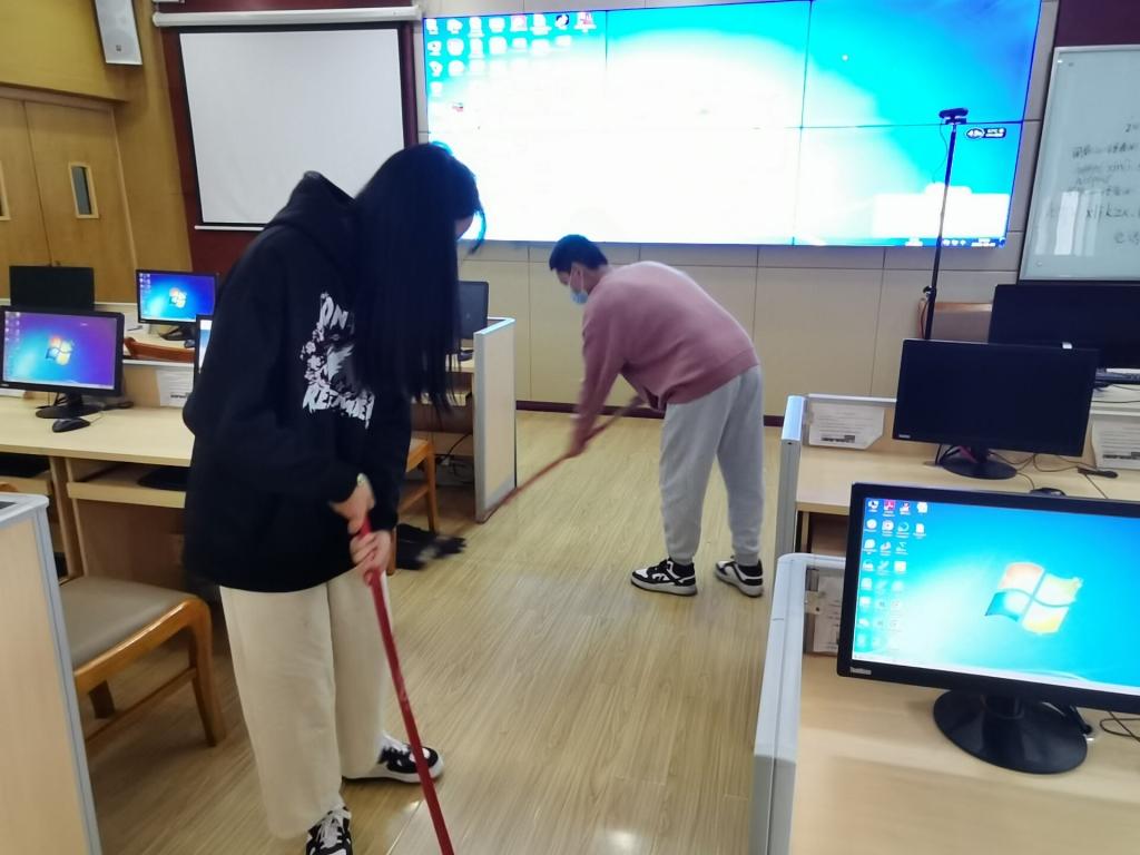 在实验室卫生打扫中,党员们对实训楼的教室每周都进行了全面彻底的清洁,大家展现了热情洋溢、积极向上的精神风貌,发扬着不怕脏、不怕累的精神。做到了以劳树德、以劳增智、以劳强体、以劳育美。