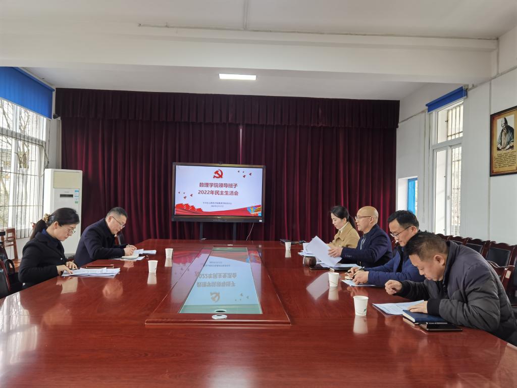 本网讯(文、图/余瑶)2月17日下午,数理学院召开2022年领导班子及个人民主生活会。学校党政办公室主任张科、经济管理学院党委书记郭晓黎到会指导。数理学院党委书记马力强主持会议。