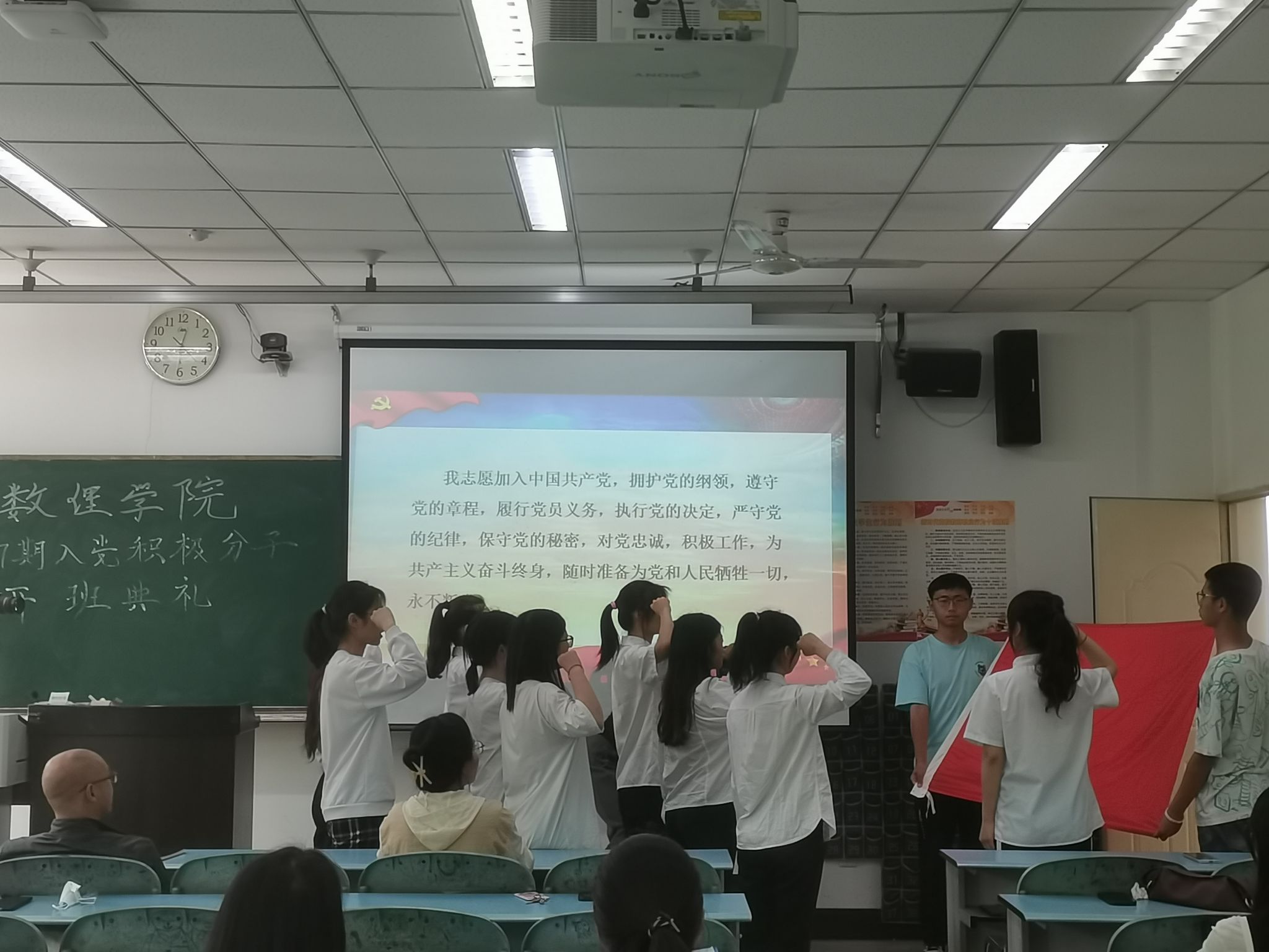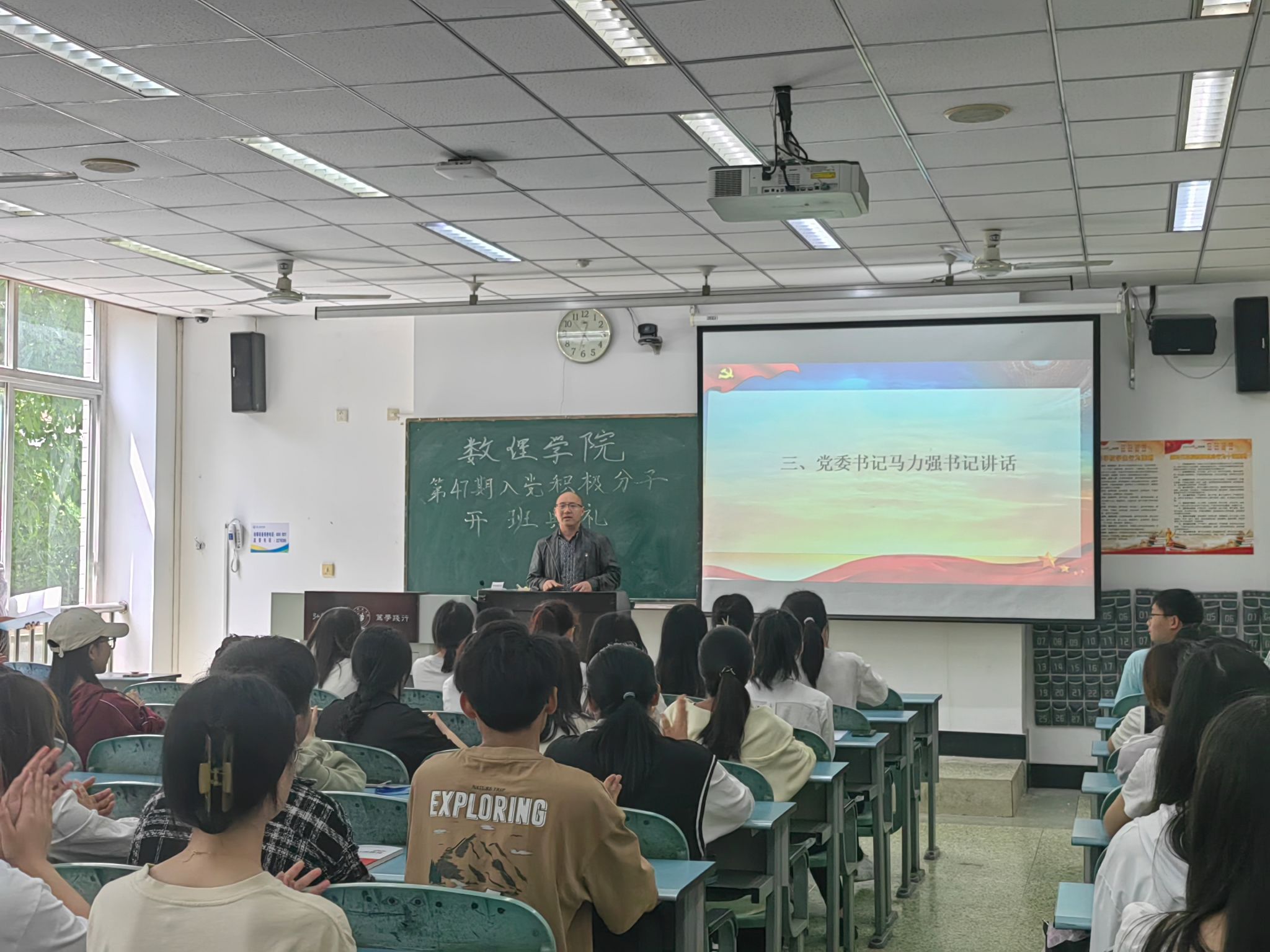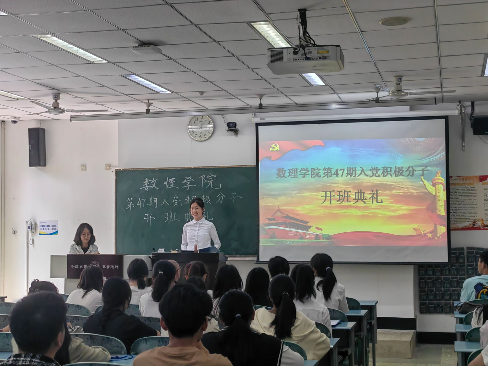本网讯(文、图/刘婧)4月14日,数理学院在行知楼211教室举行了第47期入党积极分子培训班开班典礼。出席本次开班典礼的有学院党委书记马力强、党建指导老师曹琳、学生党员代表以及47期全体入党积极分子。