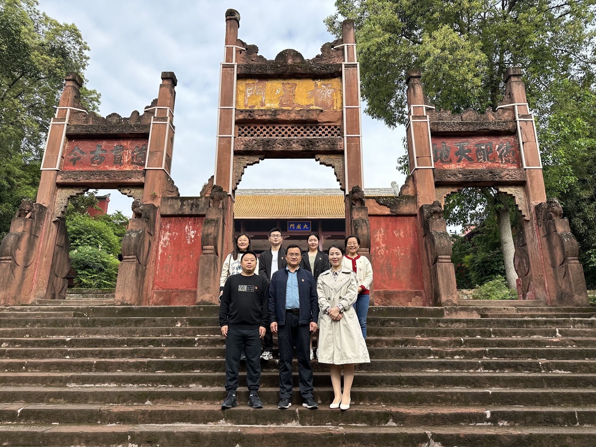 本网讯(文/胡馨文、图/余瑶)2023年4月25日上午,数理学院学习贯彻习近平新时代中国特色社会主义思想主题教育读书班按照学习计划,前往乐山文庙武汉大学办学旧址进行现场教学。