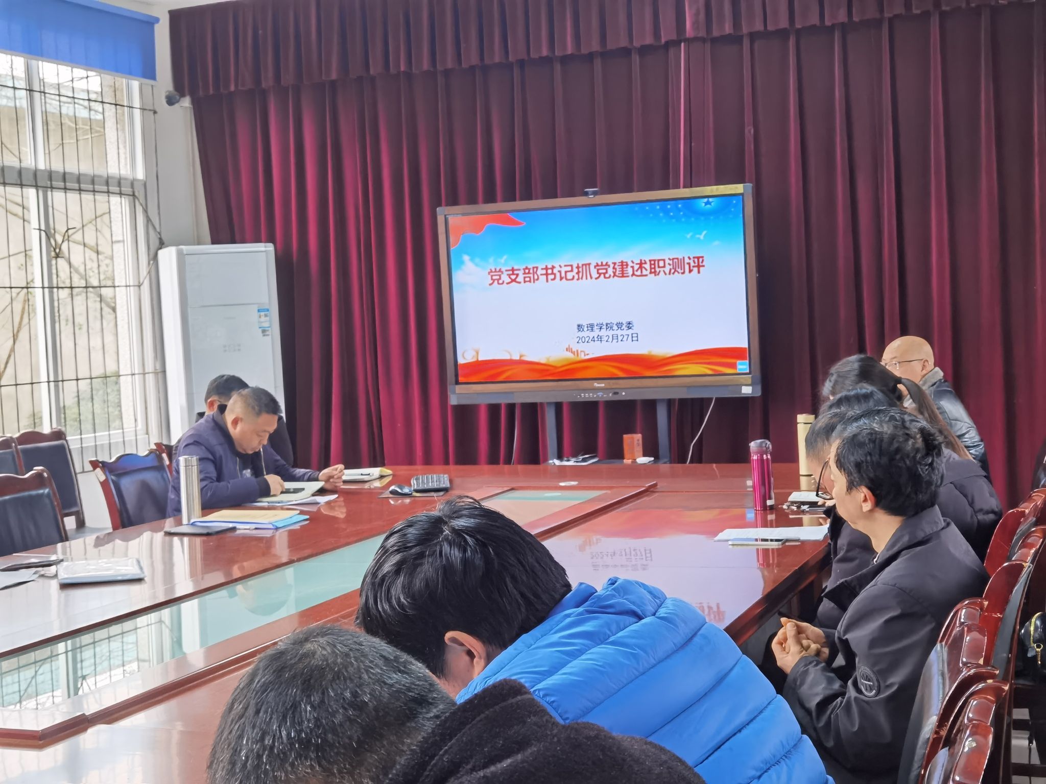 本网讯(文、图/余瑶)2月27日,数理学院党委组织师生党支部书记开展了支部书记抓党建工作述职测评,全体师生党员参会,会议由学院党委书记马力强主持。