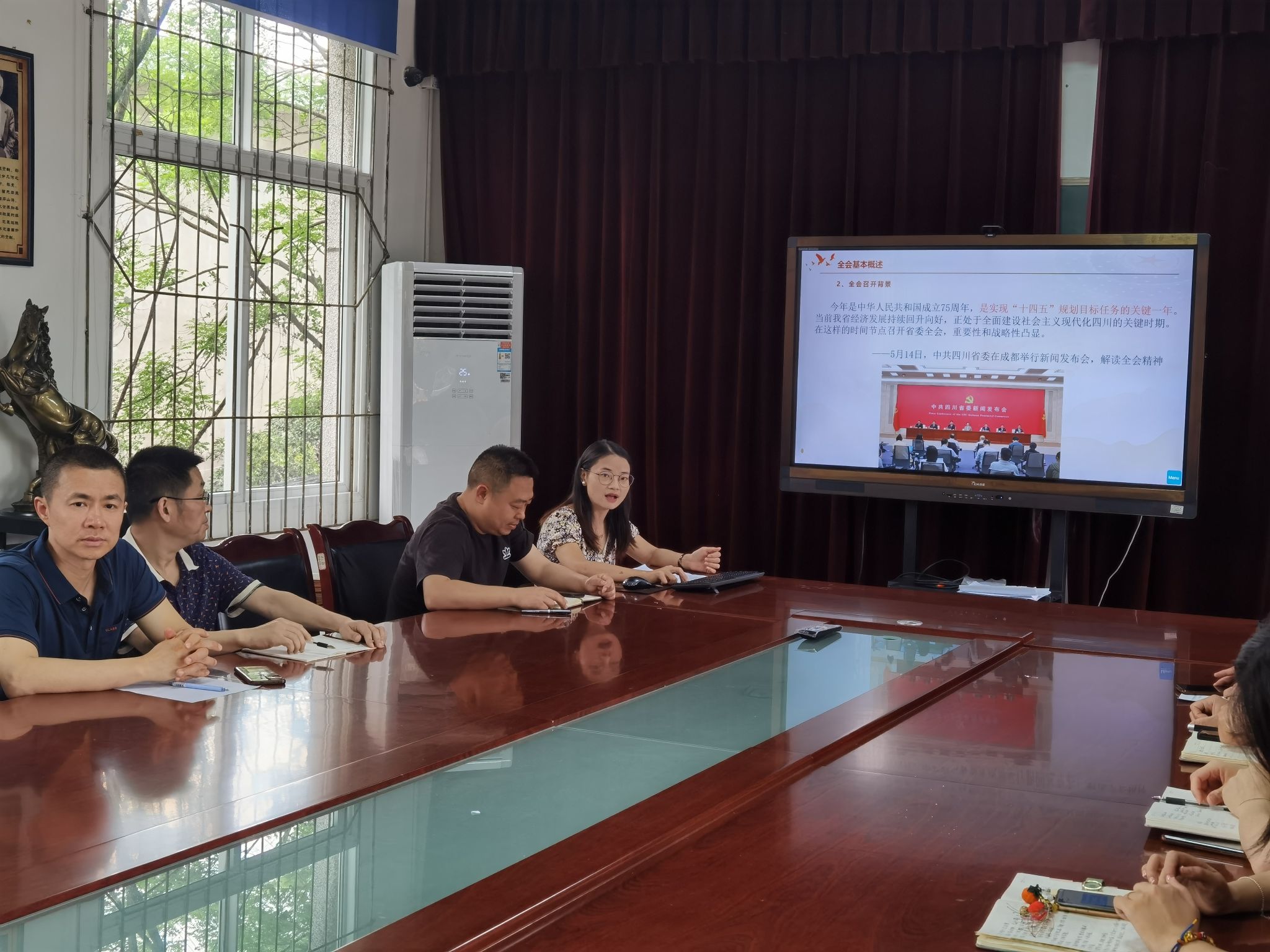 本网讯(文、图/余瑶)6月21日下午,马克思主义学院教师刘林受数理学院党委邀请,在学院会议室为全体党员进行中共四川省委十二届五次全会精神宣讲,学习会由数理学院党委书记马力强主持。