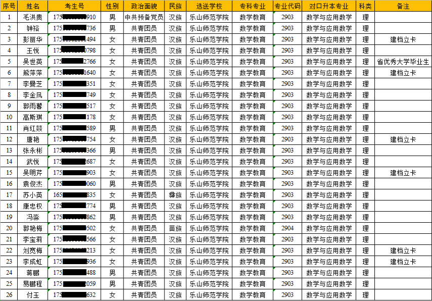 根据《四川省教育厅关于做好2020年普通高校专升本计划管理工作的通知》(川教函〔2020〕191号)、《BETWA西汉姆联2020年“专升本”招生简章》文件精神文件精神,经广泛宣传、动员、自主报名、年级汇总、学院审核等程序,由学院领导根据文件规定,经数信学院院务会讨论,学院领导一致同意此次申请“专升本”同学的初试成绩由该生专科学习阶段综合学生前五学期专业课平均学分成绩构成,并按照相关要求,拟推荐以下同学进入“专升本”复试,现公示如下:
