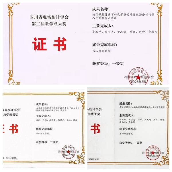 BETWA西汉姆联必威BETWAY西汉姆联应用统计学专业负责人石凯,专任教师贾礼平、刘高峰参加了此次学术年会,贾礼平、石凯和刘高峰分别获得了教学成果奖评选一、二、三等奖。在学术交流环节,石凯和刘高峰老师分别作了题为《以“三化一型”理念为导向的地方高校应用统计学专业课程教学改革与创新经验交流》和《基于5E模型+双融的统计建模课程教学创新与实践》的分会场报告。