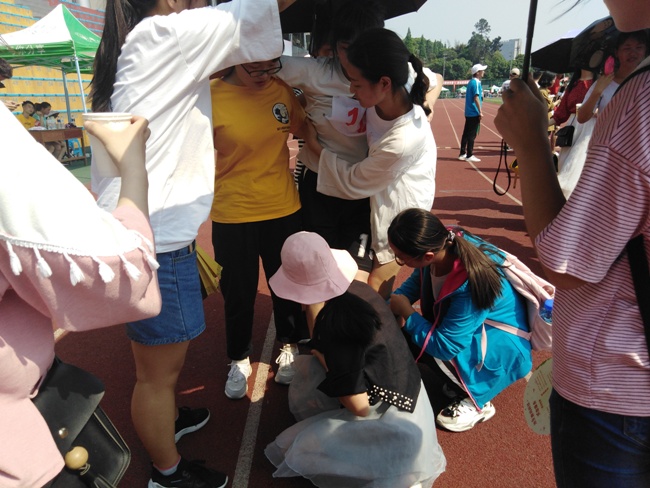 在运动会期间,数信学院的同学们都踊跃参与,运动员们在赛场上挥汗如雨,其他人在场边为运动员加油并做好后勤保障工作。学生党员也默默地加入到了志愿服务的队伍中,他们虽不是运动员,却同顶着烈日在运动场上等候,随时准备着为运动员提供最贴心的服务。学生党员志愿者们坚守在岗位上――帮助裁判员维持跑道秩序、搀扶因比赛而疲惫不堪的运动员、给运动员们送葡萄糖水……他们的身影无处不在。除此之外,学生党员也积极地参与为运动员加油的活动――他们撰写加油稿,为运动会助力,让运动场上响彻着为数信学院加油的声音。在大家的共同努力下,数信学院在运动会上取得了良好的成绩。