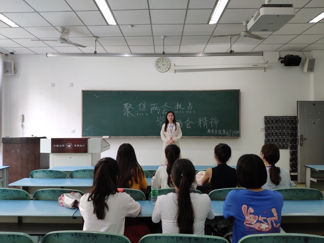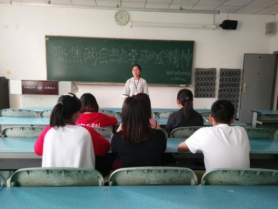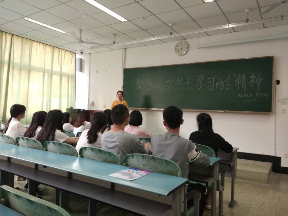 首先,会议上党支部书记姚丽群讲述了本次会议主题,谈了自己对两会的看法,她说:作为大学生,我们应该关注两会,学习两会精神。紧接着各个同志上去发表了自己看法。